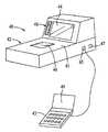 The feedback system and graphical display may be incorporated into thescanner housing80 itself, or it may comprise an add-onmodule82, as shown inFIG. 13, mounted to thehousing81 of ascanner80. In such a system, themodule82 may include acord84 which is connected to aport86 on thescanner80 for obtaining the scan and/or weight information for performing the analysis. Themodule82 is removable and thus may be only temporarily connected to thescanner80. Themodule82 may comprise only the visual display88, with processing being handled by a separate computer. For example, the module may be connected to anotebook computer90, thecomputer90 including suitable feedback analysis software. Thenotebook computer90 is also connected to aport92 on thescanner80 for receiving the scanning and/or weight information.
