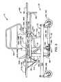 First actuator32 is mounted toactuator support structure30 so that it can translate alongactuator support structure30 such that whenfirst actuator32 is fully extended,patient support assembly100 can be pivoted to a horizontal position by translating the base ofactuator32.Support structure30 includes a pair ofactuator support members30A and30B which extend betweenend member22C andtransverse member22D ofcarriage22.First actuator32 is mounted toactuator support structure30 by anactuator truck30C which has rollers that engagesupport members30A and30B such thatactuator truck30C can move along the lengths ofsupport members30A and30B betweenend member22C andtransverse member22D. As is shown inFIG. 3,actuator truck30C is secured by an internally threadeddog30D to a correspondingly threadedactuator bar30E that is rotatably mounted betweensupport members30A and30B.Actuator truck30C and threadedactuator bar30E are normally stationary. When threadedactuator bar30E is turned upon its axis by acrank30F,actuator truck30C is moved alongsupport rails30A and30B. This arrangement provides an alternate means for raising and loweringpatient support assembly100 even iffirst actuator32 is not operating.