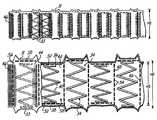Referring toFIGS. 2 and 3, each string ofsprings30 has atop surface31 and abottom surface33, the distance between which defines the height H1 of the string ofsprings30. Each string ofsprings30 comprises a row of interconnected fabric pockets32, each fabric pocket32 containing acoil spring34. As best illustrated inFIG. 3, eachcoil spring34 has an upper end turn36, alower end turn38 and a plurality of central convolutions40 between the end turns36,38.