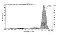 In some embodiments, the cement composition is prepared by first dry blending the coarse barite with any known cement. The cement may be any hydraulic cement composed of various species containing calcium, aluminum, silicon, oxygen, and/or sulfur which sets and hardens by reaction with water. Examples of suitable hydraulic cements are Portland cements, pozzolanic cements, gypsum cements, high alumina content cements, silica cements, and high alkalinity cements. The cement is preferably a Portland cement, more preferably a class A, B, C, G, or H Portland cement, and most preferably a class G or H Portland cement. A suitable coarse barite is commercially available from Halliburton Energy Services, Inc. (hereinafter “HES”) under the tradename SWEEP-WATE™. This particular form of barite is coarsely ground such that about 90% of the barite particles have a particle size greater than about 125 microns. A preferred particle size distribution of the barite is shown in FIG.1. In particular,FIG. 1 depicts the particle size distribution of SWEEP-WATE™ barite. The mean particle diameter and median particle diameter of SWEEP-WATE™ barite are about 305 microns and about 289 microns, respectively. Its specific surface area is about 4,566 cm2/mL. As used herein, the symbol “%” represents the term “percent”. The amount of coarse barite added to the cement can vary depending on the desired density of the cement slurry. For example, the amount of barite added to the cement may range from about 5% to about 100% by weight of the cement, more preferably from about 10% to about 70%, and yet more preferably from about 15% to about 50%.