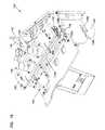 FIGS. 34,36 to41 illustrate one preferred embodiment of acard path352 defined bytracks351,357 capable of guiding cards through the module, guiding cards out of thecard path352 for transfer into a card collection tray, and providing upward bias force on cards for reading magnetic stripes with themagnetic stripe reader370. Thelower card track351 is spring loaded in order to bias cards upward against the upperfixed card track357. Thelower track351 also is split at the midpoint of themagnetic stripe reader370. Thecard path352 defined by thetracks351,357 extends between theupstream side311aanddownstream side311b.