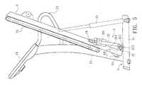 FIG. 9 shows a height adjustment device for tread frame of a conventional treadmill; and