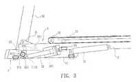 Furthermore, thetread frame6 is ascended/descended with the front supportlever pivot holes72 of the linkingplates7 serving as the axis. In order to lift the front end of thetread frame6 to a certain height, the distance between the front supportlever pivot hole72 and theframe pivot hole71 must have a certain length. Accordingly, the force arm h1 between the front supportlever pivot hole72 and theframe pivot hole71 of the linkingplate7 will be excessively long. When thetread frame6 is upward pivotally folded about theframe pivot hole71, as shown inFIG. 10, the overlong force arm h1 will increase the force applied to the front supportlever pivot hole72 of the linkingplate7. Therefore, after folded, thetread frame6 has poor support strength and can be hardly stably supported.
