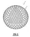 FIG. 7 is an isometric view of a first embodiment of a golf ball according to the present invention having an icosahedron pattern, showing dimple sizes;