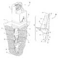 The operation of theground retention apparatus20 to prevent theoutdoor pedestal10 from being lifted off the ground is illustrated in FIG.2. If theoutdoor pedestal10, and hence theground stake22, are lifted in the direction indicated by thearrow26, thestop plate30 will move relative to theground stake22 in the direction indicated by thearrow28. When thestop plate30 moves from the first position shown inFIG. 1 wherein thestop plate30 is generally parallel to the longitudinal axis defined by theground stake22 to the second position shown inFIG. 2 wherein thestop plate30 is angled relative to the longitudinal axis defined by theground stake22, earth E will fill in space between thestop plate30 and theground stake22. As a result, it will become increasingly difficult, if not impossible, to continue lifting theoutdoor pedestal10 and theground stake22. The movement of thestop plate30 must be constrained to prevent the unauthorized person from exerting an upward force that is sufficient to overcome the resistance of thestop plate30 against the earth E. Accordingly, a restrainingcable38 is provided to limit the movement of thestop plate30 in a manner to be described hereinafter in greater detail. If necessary, an authorized field technician can remove theoutdoor pedestal10 by digging around theground stake22 and thereby loosen the earth E sufficiently to permit theoutdoor pedestal10 and theground stake22 to be lifted off the ground G.
