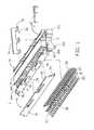 Please refer toFIG. 4, theterminals30 arranged in two rows are received in thehousing10. Eachterminal30 includes a connectingportion33, aretention portion31 extending upwardly from an end of the connectingportion33, atail34 extending horizontally from another end of the connectingportion33, and acontact portion32 extending upwardly from theconnecting portion33 adjacent to theretention portion31. Thecontact portion32 is S-shaped. Theretention portion31 further comprises aprojection312 projecting therefrom for interferentially engaging with thefirst passageway124.