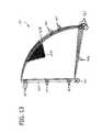 Each of theaforementioned structures21 further comprisesupper frame elements65 for each of the lower frame elements47 (FIGS. 1,2 and6). However, it is envisioned that some or all of the upper frame elements could be omitted without departing from the scope of the present invention. Thecentral support29,lower frame elements47 andupper frame elements65 may each be referred to generally as structural members. In any event, each of theupper frame elements65 corresponds to one of thepartition walls33 and extends from the upper joint43 of thecentral support29 to a remote end of a correspondinglower frame element47. Theupper frame elements65 may be shaped in any number of ways, including straight (not shown), bendable to an arcuate configuration (FIGS.1 and2), or including a pre-formed bend (FIG.7). In thestructure21 depicted inFIGS. 1 and 2, theupper frame elements65 are generally elongate, flexible portions of material. Suitable materials include fiberglass, aluminum, steel or carbon fiber, among others. Such materials are also suitable for thecentral support29 andlower frame elements47. Because eachupper frame element65 is flexible, when the ends of each upper frame element are maintained at some position nearer one another than the relaxed length of the upper frame element, the element bends into an arcuate shape, as shown. More specifically, the upper joint43 and the remote end of a respective one of thelower frame elements47 control the location of the ends of eachupper frame element65, thereby positioning and shaping the upper frame element. Varying the length of theupper frame element65, thecentral support29 or the correspondinglower frame element47 can alter the curvature of the upper frame element, from substantially straight (not shown) to curved, as depicted inFIGS. 1 and 2. Modifications to the curvature of suchupper frame elements65 are contemplated as within the scope of the present invention.