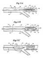 FIG. 11C is a cutaway side elevation view of a coronary artery illustrating the stent seated to the walls of the coronary artery and the catheter partially withdrawn following deflation of the catheter balloon;