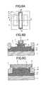 FIG. 29A is a plan view for illustrating the principal part of the device according toEmbodiment 3 of the invention, in the order of the steps of fabrication, FIG.29B is a sectional view taken on line A-A′ inFIG. 29A, andFIG. 29C is a sectional view taken on line B-B′ inFIG. 29A;