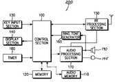 Thecontrol section100 controls the program to proceed from thesteps312,313,316 and318 to thestep308 so that theaudio processing section170 converts each of the corresponding audio data into an analog data to output the converted data to the outside through thespeaker190.