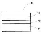 Another embodiment of the present invention is a thermal transfer element utilizing these polymers as the releasable adhesion material.FIG. 1 shows athermal transfer element10 comprising adonor substrate11 and amulticomponent transfer layer13 with thereleasable adhesion layer12 between thedonor substrate11 and themulticomponent transfer layer13. The multicomponent transfer layer can be processed in the absence of light, and therefore can sustain high temperature. Upto completion of the fabrication process, the multicomponent transfer layer can be transferred to a receptor suitable for product characteristics. The transfer process can be performed at low temperature with photoexposure.