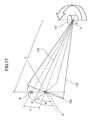In this situation, the laser beams are respectively reflected twice in thepentaprism674, and angles at which the laser beams are deflected simply depend upon a deflection angle in transmission through thepentaprism674. Thus, directions of the emergent fan-shapedbeams653,652band652aare not influenced by maladjustment between thelaser projector603 and therotary unit605. In some application, for the purpose of blocking light other than the laser beams emitted from thelaser illuminator632 and entering thecollimator lens633, a shield mask (not shown) may be provided between thelaser illuminator632 and thecollimator lens633.
