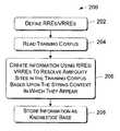 Atblock204, thetraining computer100 reads atraining corpus120. Atblock206, thetraining computer100 then creates information that uses the RREs/VRREs to properly resolve ambiguity sites in the training corpus based upon the string context in which they appear. As one example of this creation operation, thetrainer130 implements a learning machine that is augmented with the ability to learn with RREs/VRREs. The learning machine may utilize, for example, transformation sequence learning to produce a set of rules based on the RREs/VRREs, or decision tree learning to produce classification trees based on the RREs/VRREs.