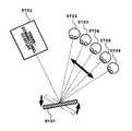 FIG. 87A illustrates a three-dimensional display, which includes areflector5707 to distribute an optical axis from the three-dimensional display5701 into a plurality of optical axes on a time division basis and reflect/refract light from the three-dimensional display toward each of a plurality ofobservers5702,5703,5704,5705,5706 so that all the observers can view the same three-dimensional image. Among devices used for thereflector5707 are a half mirror, a total reflecting mirror and a prism. Thereflector5707 deflects light from the three-dimensional display at high speed within the after image time of human eye betweenobserver5702 andobserver5706 to distribute light to individual observers. Light distribution can be achieved by reciprocating the reflector to left and right at high speed or by rotating it in one direction. When the light, while being deflected, reaches the direction of an observer, it is stopped temporarily at that position and then deflected toward the next observer. This process is repeated at high speed allowing the observers to see a three-dimensional image.