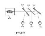 FIG. 81A illustrates a three-dimensional display5101 which allows a plurality ofobservers5102,5103,5104 to simultaneously view a three-dimensional image displayed on the three-dimensional display5101, by puttingreflectors5105,5106,5107 at different angles on the optical axis of the three-dimensional display to reflect the three-dimensional image toward the observers. Thereflectors5105,5106,5107 used are, for example, half mirrors or prisms, which can perform reflection or refraction and transmission at the same time. Thereflector5107 alone may use a total reflecting mirror.
