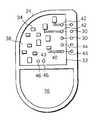 A firstelectrical component33 comprises a substrate34 (e.g. a printed wire board or ceramic substrate) having a plurality of surface-mountedcomponents38,metalizations40, a first array ofcontact pads42 and a second array ofcontact pads43 disposed thereon to form a large scale integrated circuit. For example, in the case of a cardiac pacemaker, the circuit would comprise one or more sense amplifiers, pulse generators, etc. coupled to non-resident heart sensors viacontact pads42, electrical connectors44 (e.g. wires or conductive ribbons) and feed-throughs30. It should be clear, however, that the specific circuitry and the function thereof are not to be considered as a limitation since the invention can be employed with circuitry associated with other types of implantable medical devices such as defibrillators, neuro-stimulators, monitors or drug pumps, etc. However, for a further discussion of cardiac pacemakers, the interested reader is directed to U.S. Pat. No. 4,401,120 issued to HARTLAUB et al.; U.S. Pat. No. 4,958,632 issued to DUGGAN; U.S. Pat. No. 5,052,388 issued to SIVULA et al.; U.S. Pat. No. 5,080,096 issued to HOOPER et al.; U.S. Pat. No. 5,088,488 issued to MARKOWITZ et al.; U.S. Pat. No. 5,127,404 issued to WYBORNY et al; U.S. Pat. No. 5,154,170 issued to BENNETT et al.; or U.S. Pat. No. 5,535,097 issued to RUBEN et al.
