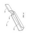 FIG. 15 is a perspective view of the mechanical breakaway device ofFIG. 11. In addition to the breakingmember1402 described above, themechanical breakaway device1106 also comprises a grippingmember1502. In this particular embodiment, the grippingmember1502 is U- or V-shaped, withside walls1504 that extend over the top of theside walls1506 of the breakingmember1402. Thetop edges1508 of theside walls1504 of the grippingmember1502 should contact thetop edges1510 of theside walls1506 of the breakingmember1402. Thetop edges1508 of theside walls1504 of the grippingmember1502 should be somewhat curved to facilitate the gripping of thetop edges1510 of theside walls1506 of the breakingmember1402. Thetop edges1508 of theside walls1504 of the grippingmember1502 should be such that they facilitate sliding of the grippingmember1502 across thetop edges1510 of theside walls1506 of the breakingmember1402.