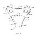 Theplate102 comprises abody206 having acenter position208 and threeextension regions210,212,214 that are positioned symmetrically about and extend radially from thecenter position208. In other words, each of theextension regions210,212,214 are equally spaced about the perimeter of the body106. In this embodiment, thebody206 has a concave shape between each of the first, second, andthird extension regions210,212,214.
