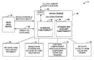 Referring toFIG. 1, avehicle cradle architecture8 is illustrated in accordance with an aspect of the present invention. A hand helddevice10 is received by adevice cradle20 that provides storage and motion stability for the device. Thedevice cradle20 can be mounted in a vehicle (not shown), wherein the hand helddevice10 can be substantially protected from shock and/or vibration. The hand helddevice10 can be an inventory system, for example, wherein data is collected from a plurality of sources in accordance with the travels of a vehicle (e.g., vehicle operator stops at a number of locations and retrieves inventory data from the locations).