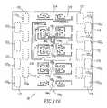 Turning attention now toFIG. 14D, shown thereat is a buriedground layer208 which includes a metallizedground plane layer210 of metallization for walls of thewaveguides1231. . .1234, the underside of the active T/R chips1661. . .16616as well as the coaxialtransmission line elements1861. . .1864, Also provided on thelayer208 is an arrangement of DC connector points211 for the various components in the T/R chips1661. . .16616. Portions of thecenter conductors1881. . .1884and theouter conductors1841. . .1844for the coaxialtransmission line elements1861. . .1864are also formed onlayer208.