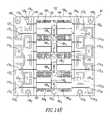 FIG. 14B shows the nextunderlying layer152 of thebeam control tile60 where sixteen GaAs T/R chips1661. . .16616are located in thecavity region128. The T/R chips1661. . .16616will be considered subsequently with respect toFIG. 15. Thelayer152, as shown, additionally includes the metallization for the sixteenwaveguides1231. . .1238and1239. . .12316overlaying thevias172 shown inFIGS. 14A,14C and14E as well as the striplinetransmission line elements1741. . .1748and,1749. . .17416which terminate in respectivewaveguide probe elements1751. . .1758and1759. . .17516.
