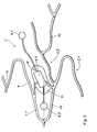 Thestent2 is adapted to couple out the stimulation energy which is inductively coupled in by way of the magnetic field and which is delivered by theexcitation device5, in the form of stimulation currents involving low-frequency modulation. For the purposes of coupling in the stimulation energy, as diagrammatically shown inFIG. 2, it is provided with aresonance circuit7 which comprises an inductive element7.1 and a capacitive element7.2 and whose resonance frequency corresponds to the carrier frequency of the magnetic field. Theresonance circuit7 is connected to a coupling-outunit8. This includes electrodes8.1 and8.2 and a conversion unit8.3 which possibly converts the high-frequency currents induced in theresonance circuit7 into low-frequency stimulation currents which are then delivered to theblood vessel3 by way of the electrodes8.1 and8.2.