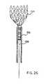 FIG. 24 is side elevation view of a restraining sleeve incorporating the pattern ofFIG. 23, with the sleeve shown partially removed via an integral, multi-filament deployment line;
