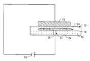 While theelectrode14 is generally an electrostatic electrode, the device may be configured such that theelectrode14 forms a plasma generating or radio frequency electrode.Electrode14 can be a foil, perforated foil, solid plate, perforated plate, a mesh, a screen printed layer or have some other configuration that is suitable for incorporation into electrostatic chucks or susceptors. Preferably, theelectrode14 includes molybdenum, tungsten, or combinations thereof. Optionally, the electrode can include additional metals such as nickel, cobalt, and combinations thereof. Other suitable materials include, but are not limited to, tantalum, platinum, rhodium, and hafnium.