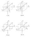 With reference toFIGS. 6A to 6H, let us now examine an alternative way of forming for the device an acceleration change component parallel to the earth's gravity. In this embodiment, the space depicted as a cube inFIGS. 6A to 6H is divided into eight parts relative to the corners of the cube. The direction of gravity with respect to each one of the three axes X, Y, Z may obtain two values π/4±π/4 or −(π/4±π/4) and thus the number of parts is 23=8. In this embodiment, the direction of a gravity vector is first determined on the basis of the signs of tilt angles θ, φ and γ. When the signs have been determined, the appropriate calculation formula is selected. This procedure is entirely equivalent with formulae (3).