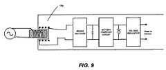 FIG. 9 is a combination electrical and mechanical detail schematic diagram of the preferred embodiment of a waterproof digital electronic camera system according to the present invention, previously seen inFIGS. 1 through 5, particularly showing a third variant of the construction of the transformer of the preferred recharging interface previously seen inFIG. 5 where a ferrite or iron core is only required in the part of the charging circuit outside of the camera, thus reducing the weight of the camera itself.