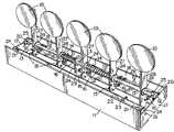 FIG. 6 is a cross-section taken along lines6—6 of figure three showing the farthest right target about to be hit while the other targets are held down after being hit.