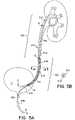 FIG. 5 is a schematic of anotherstent510. The kidney end A of the stent has a pre-formed memory bend, tocoil512 as shown. Kidney end A is larger and more rectangular to help prevent upward as well as downward stent migration. End A may be closed or tapered to accommodate various insertion techniques. For the upper portion (A–B) of the stent, diameter, lumen size, perforations and materials are conventional. Thelower end514 of the tubular stent segment ends at B. The distance A–B could vary depending on the patient's anatomy. At B, the stent is tapered (or at least smooth and constant in diameter).