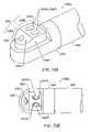 FIGS. 44A–D each show a resection unit in relation to a fluid delivery device, according to various embodiments of the invention;