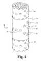 Body32 defines a number oftriangular apertures36 extending at least partially therethrough in communication withchamber34, and a number ofcircular holes38 extending at least partially therethrough from the exterior surface ofbody32.Holes38 or the other holes can be threaded or otherwise sized and/or configured for engagement with one or more insertion instruments.