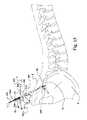 FIG. 11 is a side view of the spinal column of a patient, illustrating the percutaneous introduction of the insertion instrument illustrated inFIG. 6 into the patient, with the distal end of the insertion instrument positioned adjacent the iliac crest of the pelvic bone.