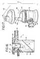 FIG. 16 is a cross-sectional view of the nebulizer ofFIG. 1 illustrating gas and aerosol flow and the position of the valves in a fully actuated position.