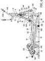 Each of theswing units3 includes alever31, a longitudinal connecting unit composed of a connectingrod32 and alink member33, and a stabilizingsupport34. Thelever31 has atop end312 provided with ahandle3121, abottom end311 opposite to thetop end312, and anintermediate portion313 between the top andbottom ends312,311. Theintermediate portions313 of thelevers31 of theswing units3 are connected pivotally and respectively to left and right sides of thefront support12 about an axis (A). The connectingrod32 has arear end321 connected pivotally to the respective one of thecrank members22, afront end322 opposite to therear end321, and alinear section323 proximate to therear end321. Thelink member33 has afirst end331 connected pivotally to thebottom end311 of thelever31, and asecond end332 opposite to thefirst end331. The stabilizingsupport34 is connected pivotally to the connecting unit to contact and move on the support surface. In this embodiment, the stabilizingsupport34 includes abracket member341 with a top end connected pivotally to thesecond end332 of therespective link member33. A pair ofrollers342 are attached rotatably to a bottom end of thebracket member341 at two opposite sides thereof to contact and move on the support surface. Thebracket member341 is secured to thefront end322 of the connectingrod32 between the top and bottom ends thereof. When thehandle3121 of thelever31 of therespective swing unit3 is swung relative to the axis (A), thelink member33 of therespective swing unit3 pulls thefront end322 of the connectingrod32 to slide back and forth, and therollers342 roll stably on the support surface.