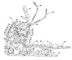 Guide tracks114 are connected to framemembers70 atpivot97 and supported bysupport bar98.Support bar98 is attached to guidetracks114 atpivots91 and pins93 which are attached to framemembers70.Alternate pins95 attached to framemembers70 are available to repositionsupport bars98 to change the pedal path curve5 manually. Guide tracks114 are shown curved but can also be straight. An actuator (not shown) controlled by the control system could also be used to change the position of guide tracks114.