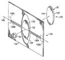 One attempt at solving the conflict between the need for flexible hinges and a rigid or flat reflecting surface is the use of an additional layer of material to support the functional surface (such as for example, a mirror). Therefore, referring again toFIGS. 8A and 8B, there is shown an exploded view and an assembled view of a single axis multilayered scanning device having a mirror as the functional surface. As shown, the multilayered scanning device comprises a support structure orhinge layer126 for pivotally supporting an attachingmember128 having afront side130 and aback side132 connected to ananchor member134 by a pair of torsional hinges136aand136b. According to this embodiment,anchor member134 is a frame as shown. However, according to another embodiment,anchor member134 could be replaced by a pair of anchor pads138aand138bas indicated by the dotted lines. The operational orfunctional portion92 is typically thicker than thehinge layer126 and has afront portion140. When the functional surface is a mirror, thefront portion140 has a reflectingsurface142 and aback portion144. Theback portion144 is bonded or mounted to thefront side130 of the attachingmember128 and a back layer such aspermanent magnet90 is bonded or mounted to theback side132 of the attachingmember128. As shown,permanent magnet90 is bonded along theaxis146 to the center of theback side132 of attachingmember128.Permanent magnet90 is considerably stiffer than thehinge layer124 andfunctional surface portion92 and consequently stiffens and reinforces the structure in the middle area where the magnet is located. The mass moment of the permanent magnet90 (mass ofpermanent magnet90 times the offset of the center of mass of thepermanent magnet90 from axis146) is selected to be substantially equal to, and opposite the mass moment of the functional surface portion92 (mass offunctional surface portion92 times the offset of the center of mass offunctional surface portion92 from axis146) such that the moment of inertia of the assembled multilayered torsional hinged device (or mirror) is centered on the axis of rotation extending through hinges136aand136b. More specifically, according to one embodiment of the invention, the mass moment of the functional surface or mirror layer is the product of the mass functional surface or mirror layer times the offset or distance of the center of mass of the functional surface from the axis of rotation, and the mass moment of the back layer is the product of the mass of the back layer times the offset or distance of the center of mass of the back layer from the axis of rotation.FIG. 8B shows the assembled structure. Thefunctional surface portion92 andpermanent magnet90 of the assembled structure ofFIG. 8B, of course add significant weight that must be supported by the torsional hinges136aand136b. Therefore, to assure that the hinges are not under excessive stress, the design of the torsional hinges must consider the stress caused by the inertia forces and the added weight to avoid unacceptable failure rates and short life.