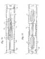 FIG. 14 is a side elevational section of the distal end portion of the embodiments ofFIG. 11 or12, i.e., a push/pull version or a piston operated version, respectively, the stent being in the confined position;