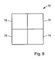 As shown inFIG. 9, an embodiment ofsystem70 may have a plurality of measurement devices. Each of the measurement devices may be configured as described herein. As described above, each of the measurement devices may be configured to determine a different property of a specimen. As such,system70 may be configured to determine at least four properties of a specimen. For example,measurement device72 may be configured to determine a critical dimension of a specimen. In addition,measurement device74 may be configured to determine overlay misregistration of the specimen. In an alternative embodiment,measurement device76 may be configured to determine a presence of defects such as macro defects on the specimen. In addition,measurement device76 may be configured to determine a number, a location, and/or a type of defects on the specimen. Furthermore,measurement device78 may be configured as to determine one or more thin film characteristics of the specimen and/or a layer on the specimen. Examples of thin film characteristics include, but are not limited to, a thickness, an index of refraction, and an extinction coefficient. In addition, each of the measurement devices may be configured to determine two or more properties of a specimen. For example,measurement device72 may be configured to determine a critical dimension and a thin film characteristic of a specimen substantially simultaneously or sequentially. In addition,measurement device72 may be configured to determine a presence of defects on the specimen. As such,system70 may be configured to determine at least four properties of the specimen simultaneously or sequentially.