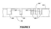 FIG. 9 shows a substantially removed, planarized overburden portion in accordance with one embodiment of the present invention.