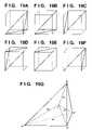 A tetrahedron interpolation method, for example, is used as the method of this interpolation. Tetrahedron interpolation is linear interpolation which uses four lattice points by dividing a three-dimensional space into unit tetrahedrons. The procedure is as follows. First, a three-dimensional space is divided into tetrahedrons as shown inFIGS. 19A to 19F. A tetrahedron to which a target point p belongs is determined. Letting p0, p1, p2, and p3denote the four apexes of this tetrahedron, as shown inFIG. 19G, the tetrahedron is further divided into small tetrahedrons. Letting f(p0), f(p1), f(p2), and f(p3) denote the transformed values of extended points, an interpolated value f(p) is calculated by