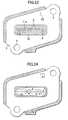 Still another example of the molded part formed by integral molding with the metal plate inserted therein and used in the thermal type air flow measuring instrument according to the first embodiment of the present invention will be described below with reference toFIGS. 20 and 21. Here, a description is made of a measure for suppressing the occurrence of cracks and the growth of fatigue cracks resulting from the presence of the weld line.FIG. 20 is a sectional view corresponding to the section taken along line C—C in FIG.1 and showing a third example of the principal portion of the molded part according to the first embodiment of the present invention.FIGS. 21A to21F show a mold flow during the molding in the section corresponding to the section taken along line B—B in FIG.1 and show the third example of the principal portion of the molded part according to the first embodiment.FIGS. 21A,21B,21C,21D,21E and21F show the progress of the mold flow in sequence.
