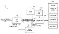 Once the class generator has created theservice class120, details of the classes are passed to a class linker140 (seeCLinker154,FIG. 3). Theclass linker140 keeps track of all service class files130 generated for the device. As such, each time theclass generator110 generates a new class, theclass linker140 adds its information in its service list table. Finally, theclass linker140 generates a servicelinker class file142 for the entire device. The service linker class keeps all details of each service class and its parent device. Moreover, theclass generator110 generates the code that creates the necessary device hierarchy for the root device. The root device is first generated by the service linker and is then registered with an event listener class, which, as described in further detail below, is part of the UDCL.