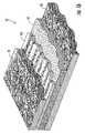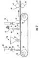 FIG. 2 illustrates the use of anair gun46 to transport a single end ofconductive strand52. In alternative embodiments, asingle air gun46 may be used to simultaneously deposit multiple ends ofconductive strand52 onto the surface of the spunbonded web/meltblown web structure44. In such embodiments, the multiple ends may be fed from packages hung on a creel or the like. In alternative aspects of the invention, the conductive filament may be deposited using a slot die. In further alternative aspects of the invention, the conductive filament may be formed in-line by means such as spunbonding or meltblowing.