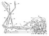 Orbital links82,84 andcoupler links90,92 are connected to crankarms20,22 at crank pivots21,23. Rocker links38,40 are connected to framemember70 atpivots41 and toconnector links86,88 atpivots33,35 as well as coupler links90,92 atpivots37,39.Orbital links82,84 orbit the elliptical path6 and the orbital path followed by crank arm pivots21,23.Pedals50,52 follow elongateclosed loop path11. The remaining portions of the second embodiment are similar to the first embodiment.