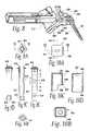 Rack (130) is further shown inFIGS. 5–6 to include a rack face having a plurality of teeth (132) which border either side of a longitudinal groove (133) extending along that rack face. These teeth (132) are longitudinally spaced with a gap (134) which is adapted to receive hook (122), each tooth including a radiused distal face (136) and a flat proximal face (138). At the proximal end of rack (130), engaging arm (139) is shown as a branched arm extending downwardly to engage at least one of plungers (142,144).