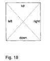 Thetouch vector82 is determined by reference toFIG. 18 in combination with theapproach vector80. The starting point of thetouch vector98 is placed at the center of the diagonals ofFIG. 18 and thetouch vector82 is therefore characterized as left, top, right or bottom. By way of example, adown touch vector82 in combination with an otherwise ambiguous L7/M2 approach vector80 unambiguously indicates that the user intended acounterclockwise motion16 on theleft side8 of therectangle6 assigned to the finger. An uptouch vector82 in combination with the L7/M2 approach vector80 unambiguously indicates that the user intended aclockwise motion14 on theleft side8 of therectangle6. Aleft touch vector82 coupled with same ambiguous L7/M2 approach vector80 unambiguously indicates that the user intended aclockwise motion14 on thebottom side8 of theimaginary rectangle6. Aright touch vector82 coupled with the ambiguous L7/M2 approach vector80 unambiguously indicates that the user intended acounterclockwise motion16 on thebottom side8 of theimaginary rectangle6.
