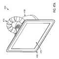 FIG. 49A illustrates a perspective view of another embodiment of abase4920 of a computer-controlled display device having a motorized assembly operatively coupled to a cable.Base4920 includes andupper portion4924, abottom portion4926, atermination ball4938, and acable4925 that extends intobase4920.Base portion4920 is shown without a movable assembly for clarity of description and to exemplify the various types of motor assemblies that may be disposed within the base. A slot oropening4928 may be disposed on theupper portion4924 ofbase4920. In one embodiment, opening4928 may be sized for inserting a disk or other types of media. As such,opening4928 may be aligned with a disk drive assembly disposed withinbase4920. The embodiment ofbase portion4920 illustrated inFIG. 49A has a widelower portion4926 narrowing in a pyramid-like shape towardstermination ball4938. The shape ofbase4920 is merely illustrative and other types of shapes forbase4920 may be envisioned. For example,base4920 may have a half dome like shape. In alternative embodiments, other shapes forbase4920 may be utilized.